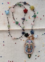 Come tutti noi, anche la collana ZODIACO è fatta di stelle 🌌. Sono sette le stelle grandi ⭐ in pietra che la compongono (giada verde, red stone, giada blu, quarzo rosa, giada limone, avventurina blu e opale), quattro le stelle piccole ✨ (giada Xiuyan, sodalite, avventurina e quarzo rosa), cinque le pietre 🪨 che ho selezionato per le perline che collegano le stelle (acquamarina, turchese peruviano, mookaite, lapis lazuli e morganite) e poi ci sono le perline minuscole in vetro color piombo.