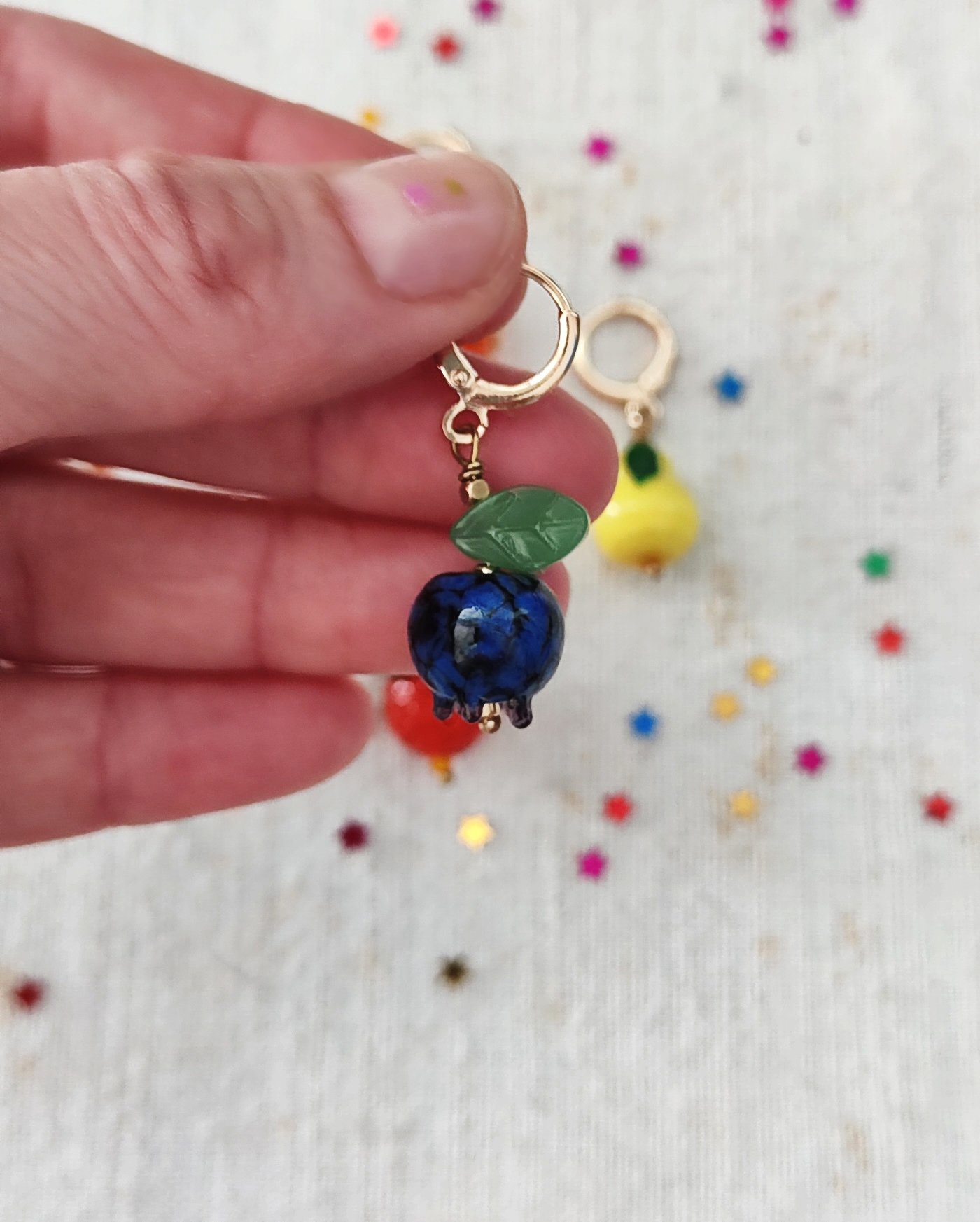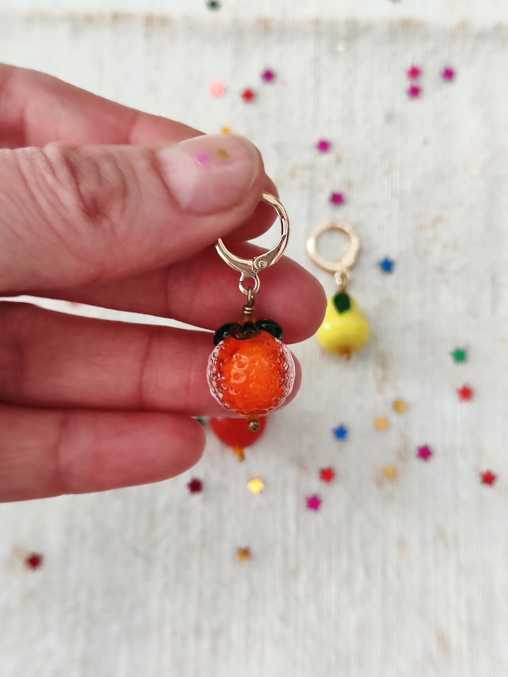 Da abbinare alle chiusure ci sono i mono orecchini con i tre pendenti in vetro, con il gancetto placcato oro. β¨