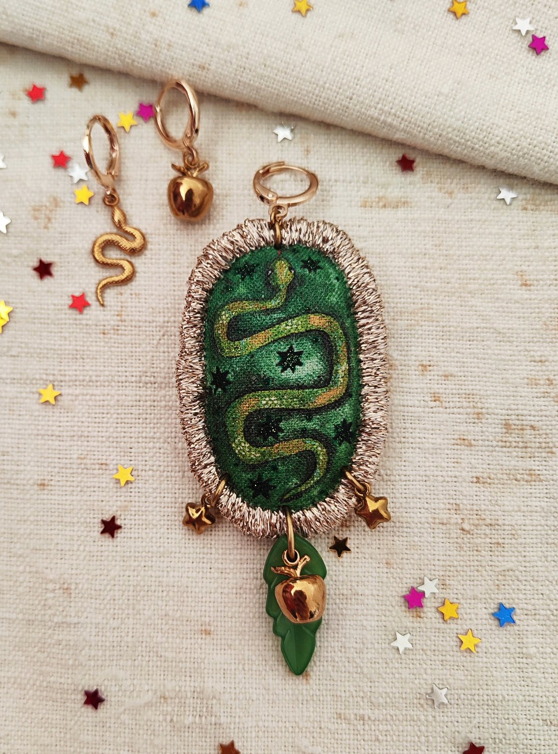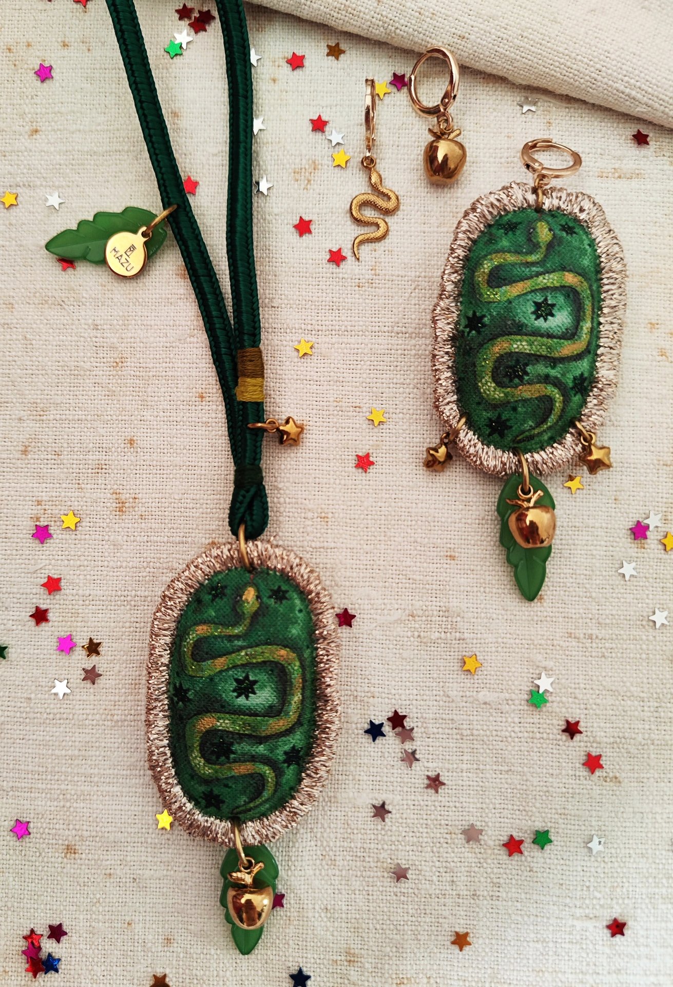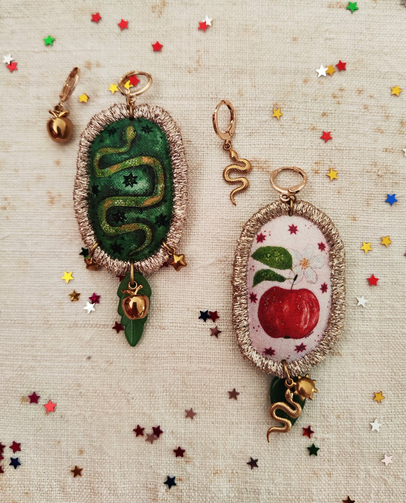 Per l'orecchino Rinnovamento 🐍✨ ci sono due orecchini piccoli, uno con una piccola mela dorata e l'altro con il serpente, ma voi potete divertirvi con gli abbinamenti! ✨