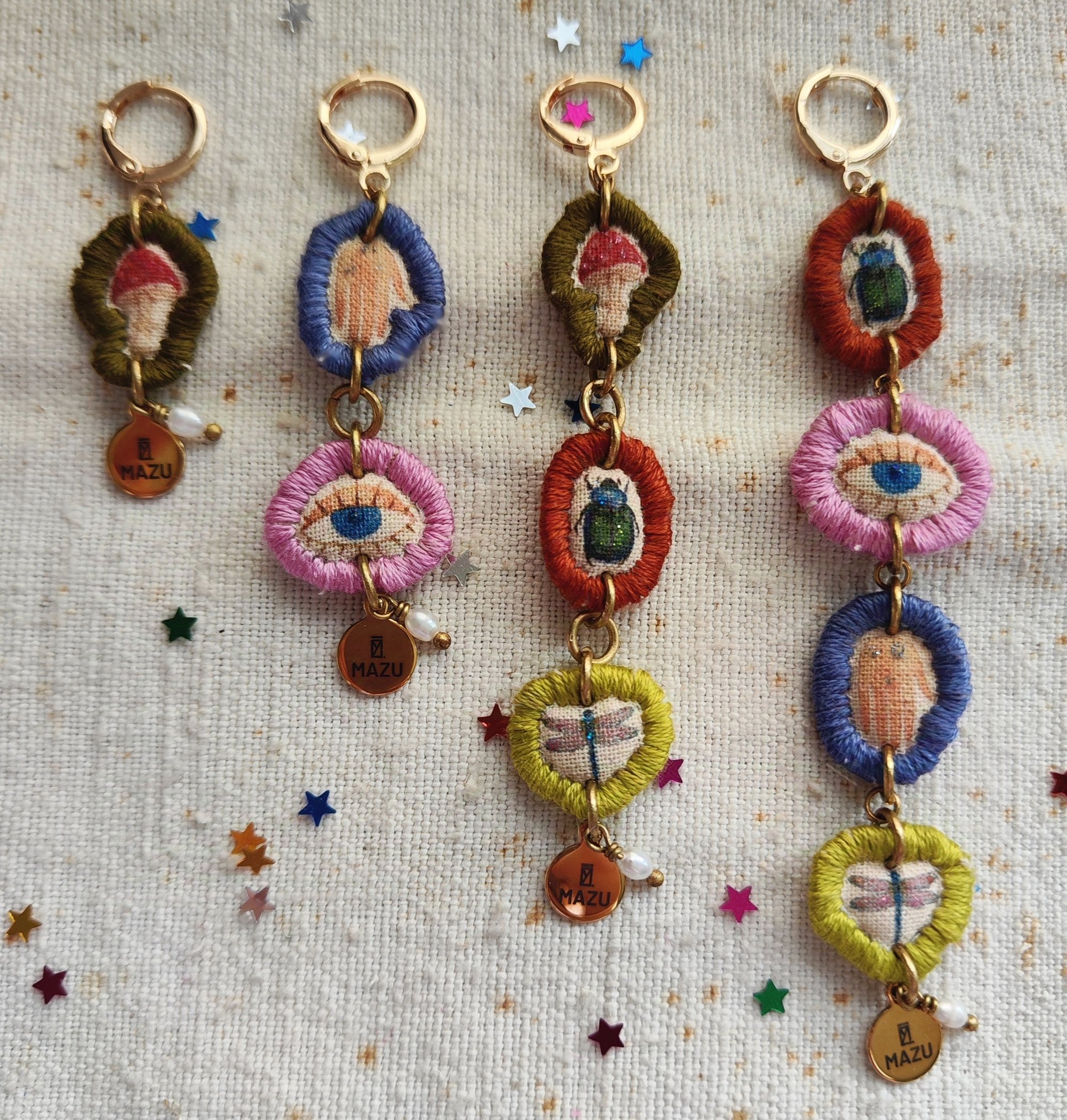 Ecco a voi cinque soggetti che potete portare singoli o insieme, scegliendo voi la combinazione e la lunghezza dell'orecchino. Anche la rifinitura è una novità, non è più solo dorata ma sono stati studiati cinque colori che potessero stare bene insieme.