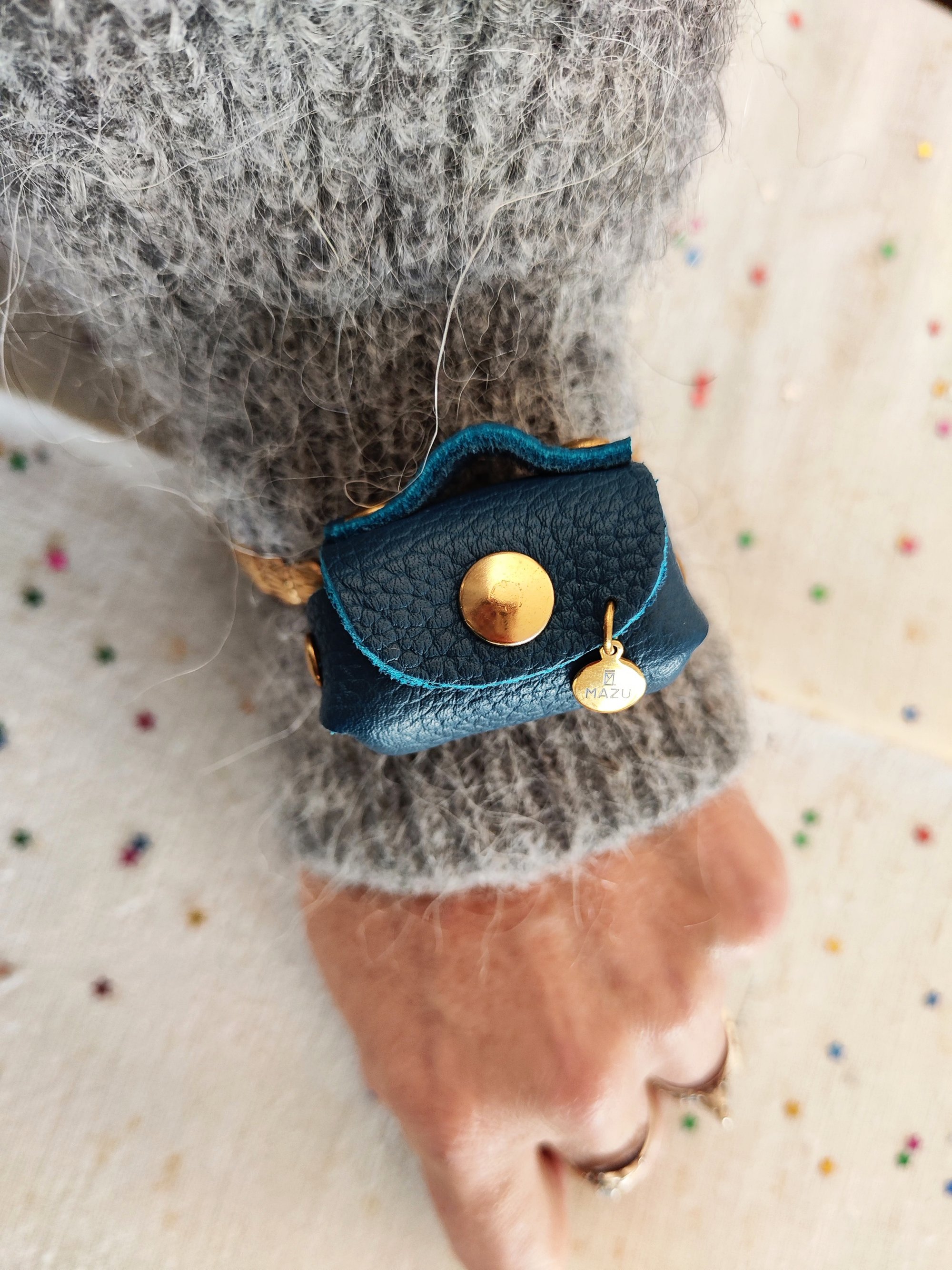 I Portacristalli sono delle piccole borse in pelle, fatte a mano in un laboratorio marchigiano. Sono cuciti sui bracciali rigidi in acciaio dorato e l'apertura del bracciale vi permetterΓ di adattarlo al vostro polso. π«³π»β¨