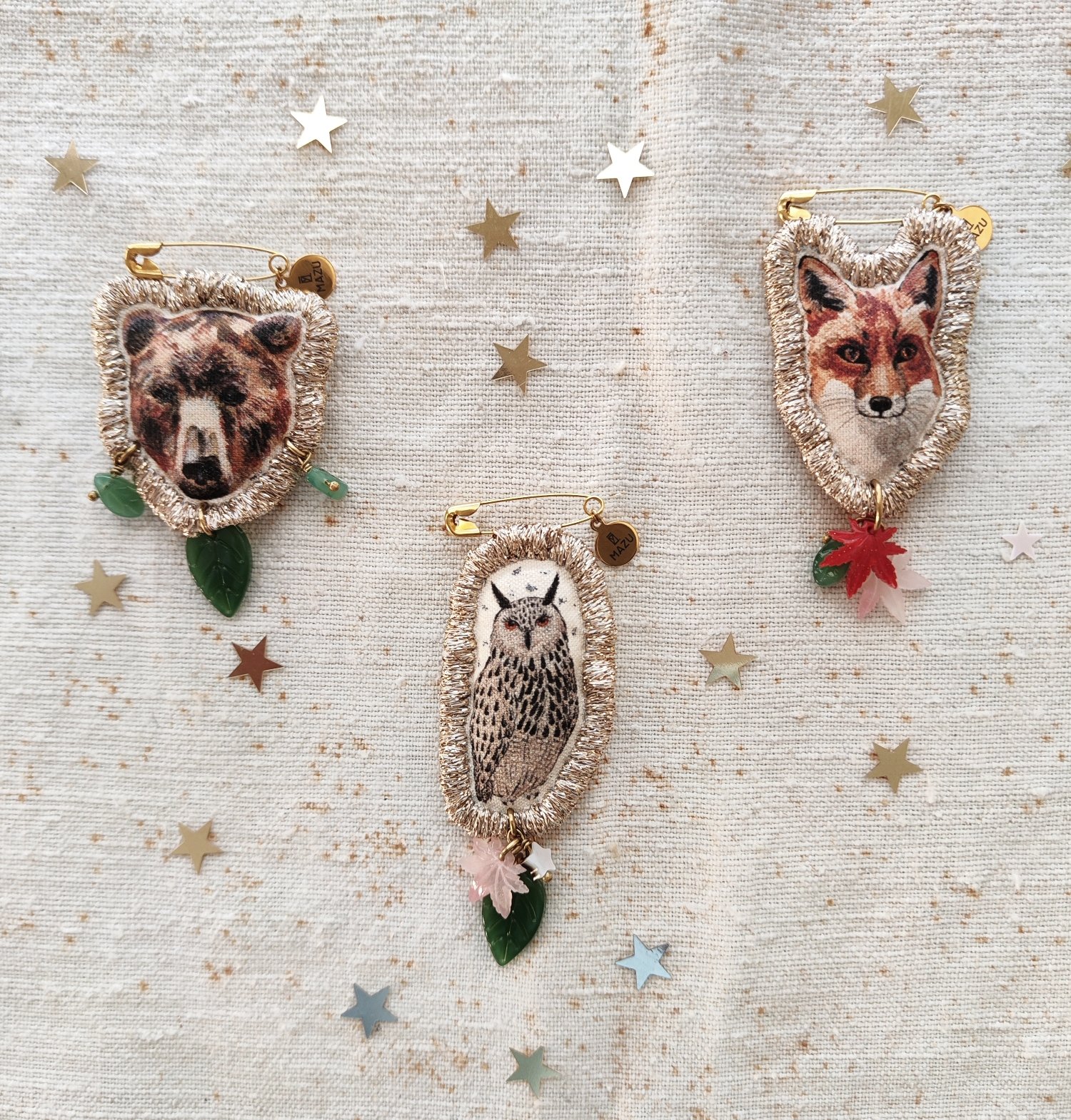 Le spille Foresta Incantata π³ β¨ fanno parte dell'omonima collezione. Sono i miei disegni trasferiti su tela da pittura, ritoccati con i colori scintillanti per la stoffa, rifiniti con il filo dorato DMC e cuciti alla spilla da balia color oro.